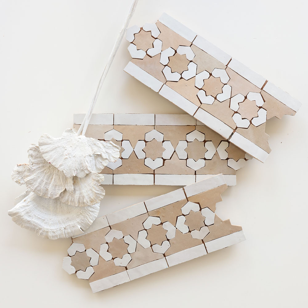 Hand-painted and hand-crafted in Morocco, these decorative tiles are suited to accent counters, bathrooms, vanities, and window surrounds. Available in a wide selection of completely customizable patterns and colors, all are designed to make an impact. Zellige tiles come pre-assembled in light panel sheets for simplifying installation.